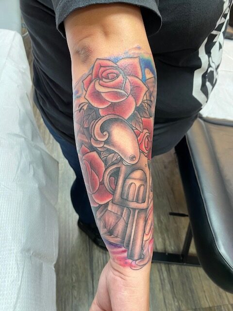Isha has lived all over California. Raised with Filipino traditions and cultural upbringing. she’s Self taught artist starting at a young age. Fast forward to high school, Took health and medical prep programs during high school. “I wanted to go to UCLA, but I couldn’t afford the left over cost of it all,” after that She went on to proceed a different path in animation, graphic design and fine art. During this course in her life, she took on the interest in the art of tattooing. After 15 years, she began her professional career as a tattoo artist. Most recently left Palm Springs and now lives in San Diego. She has been tattooing professionally 17 years. The first 7 years of tattooing she spent most of her career covering up, and fixing tattoos. Her preference in art is anime inspired pieces and black work, but she is able to tattoo any style as she had to adapt to the needs of the clientele around her.